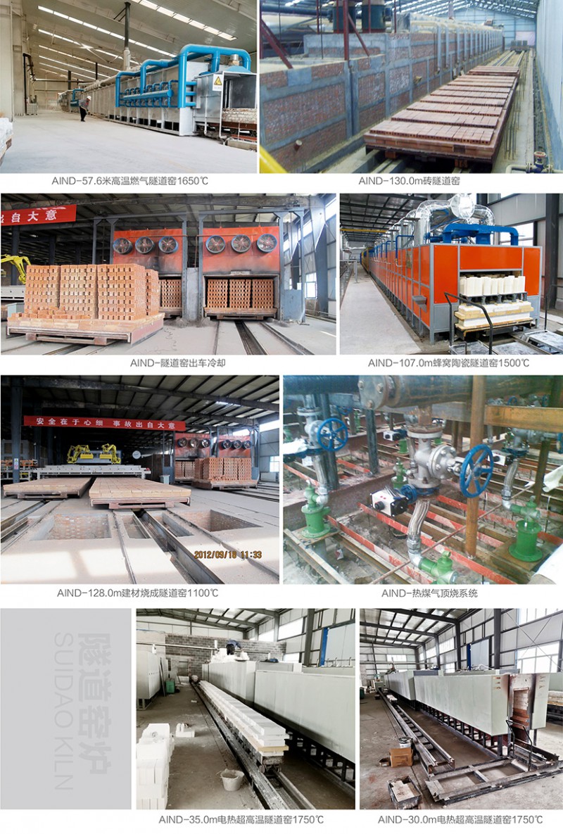 隧道窯爐為連續(xù)型窯爐,以窯車為運(yùn)載工具,具有生產(chǎn)質(zhì)量溫、產(chǎn)量大、消耗低的特點(diǎn),適合于工藝成熟批量生產(chǎn)的產(chǎn)品。該窯爐廣泛用于陶瓷產(chǎn)品的焙燒生產(chǎn),在磨料等冶金行業(yè)中也有應(yīng)用。主要包括以下幾種:窯體、窯內(nèi)輸送設(shè)備、燃料燃燒系統(tǒng)、通風(fēng)設(shè)備。窯體系統(tǒng)的主要部分,窯體上設(shè)有各種氣流進(jìn)出口。